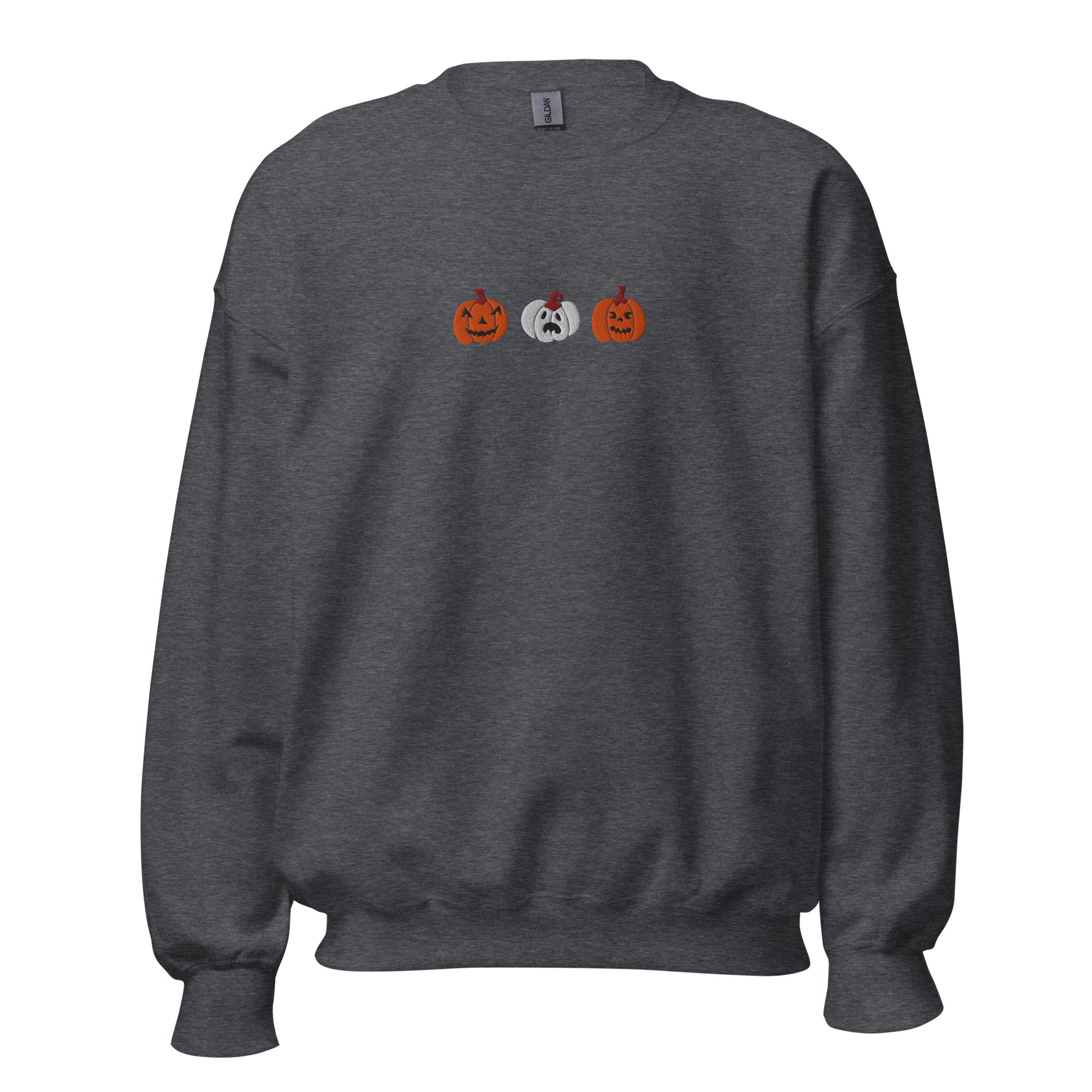 Celebrate spooky season in style with this cozy Jack-O-Lantern Embroidered Crewneck Sweatshirt. Featuring three intricately stitched jack-o-lanterns across the chest, this Halloween sweatshirt blends festive charm with everyday comfort. Each pumpkin design is embroidered for long-lasting quality, making it a fall favorite you’ll reach for year after year.