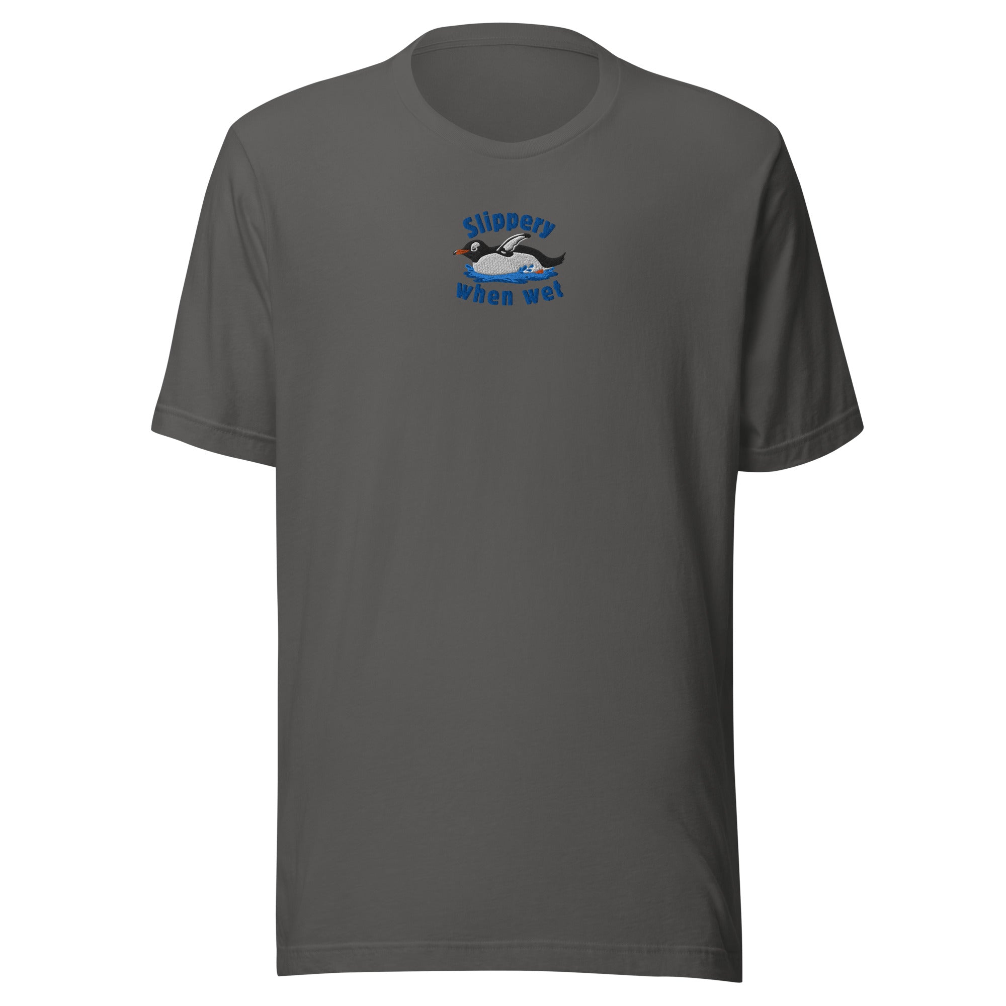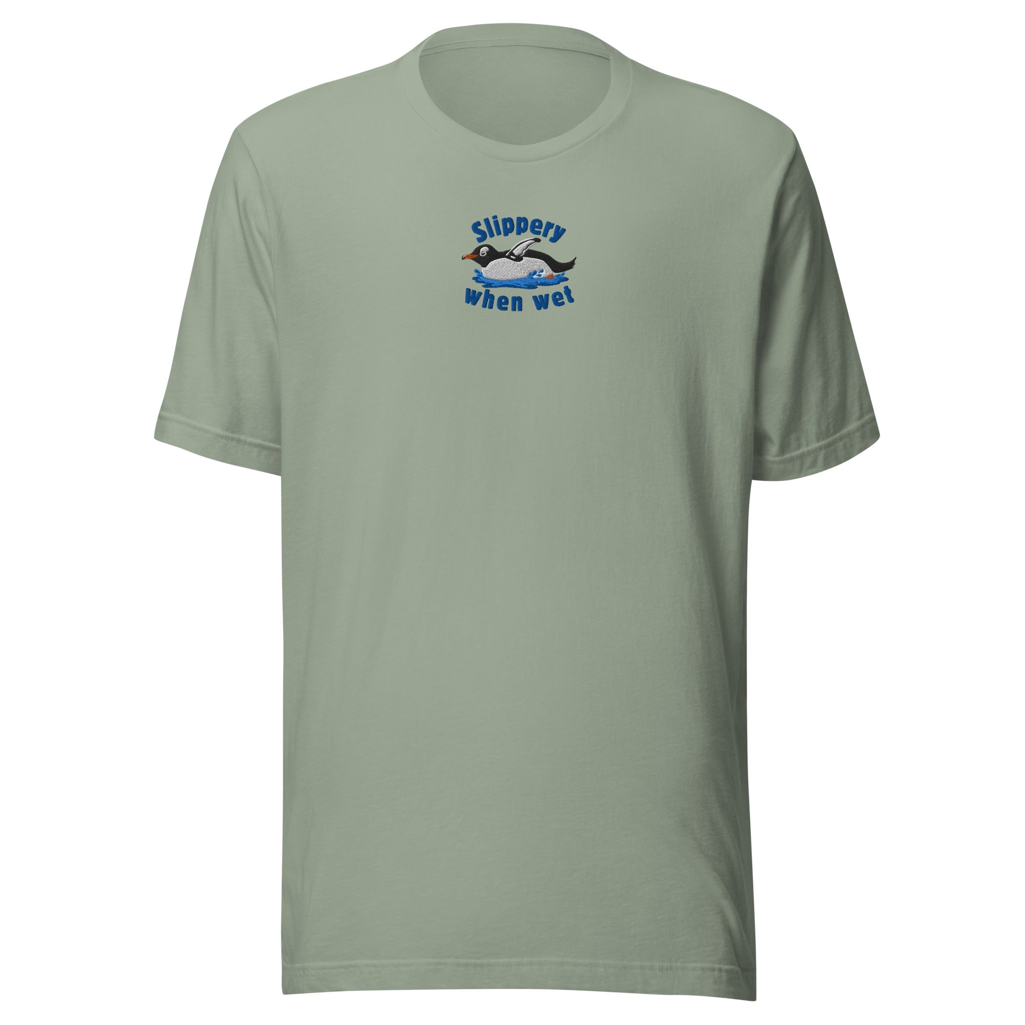 Keep things simple, soft, and slightly inappropriate with the Slippery When Wet unisex embroidered tee. This shirt is the perfect everyday staple for people who like their humor dry… and their warnings very, very clear. Lightweight, comfortable, and easy to style, it adds instant personality to any outfit without trying too hard.