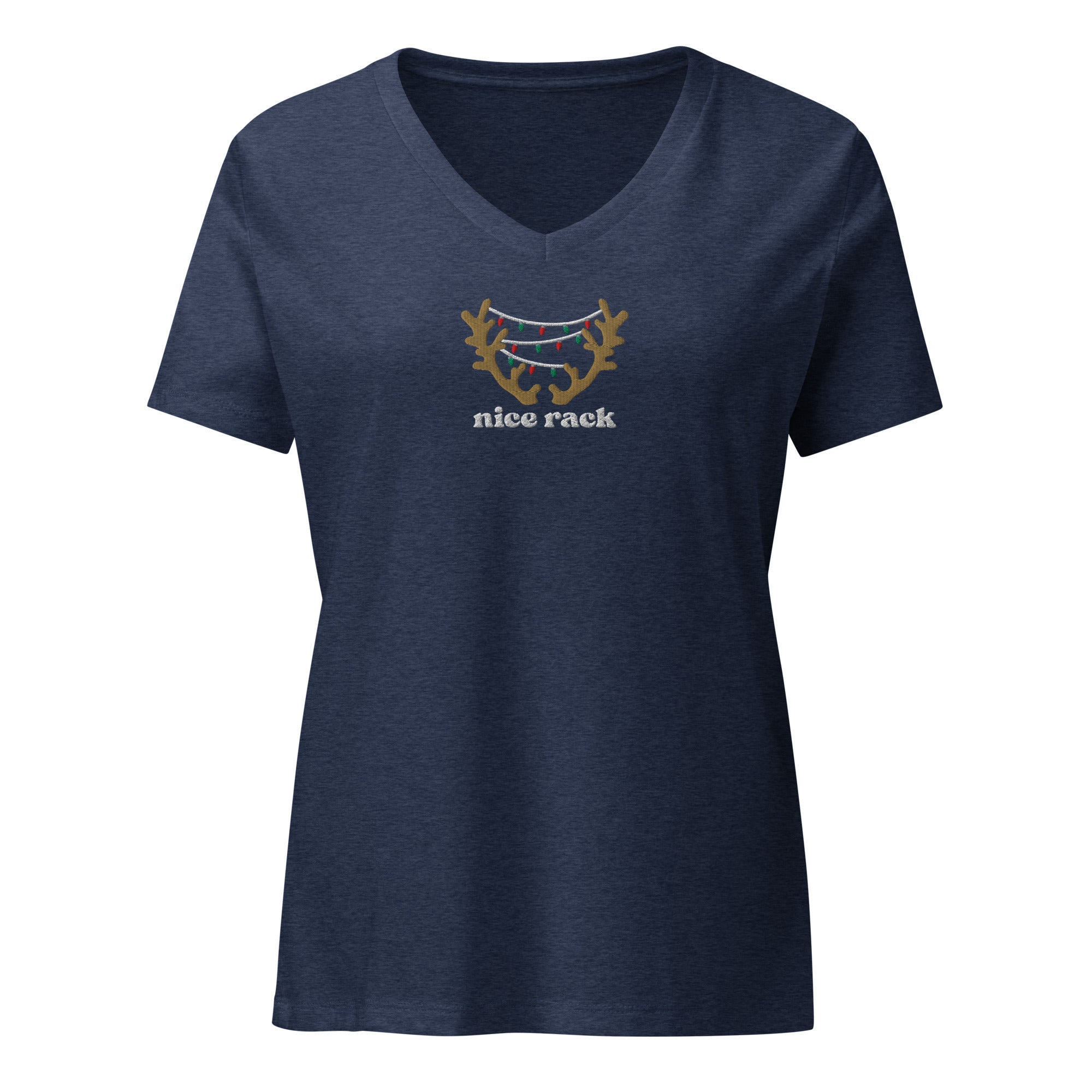 Nice Rack Reindeer Embroidered Women’s relaxed v-neck t-shirt
